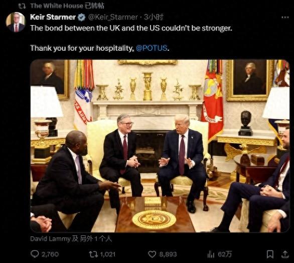 27日,特朗普在白宫与斯塔默举行会晤 推文截图 2月初,有知情人士向美国《华盛顿邮报》爆料称,英国政府上个月发布一项未公开命令,要求苹果公司开设“后门”,以允许英政府获取全球苹果用户上传至云端的所有内容。该人士称,因不愿违背对全球用户做出的安全承诺,苹果公司可能选择停止在英国提供加密存储服务。