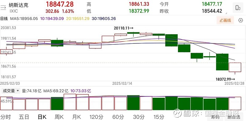 服务业采购经理指数(PMI)意外萎缩、消费者信心指数创下四年多来最大降幅、通胀预期飙升叠加特朗普政府关税政策的不确定性,美股三大指数连续两周大幅下挫,纳斯达克综合指数单周跌幅超7%,标普500指数创下年内第二大单周跌幅。