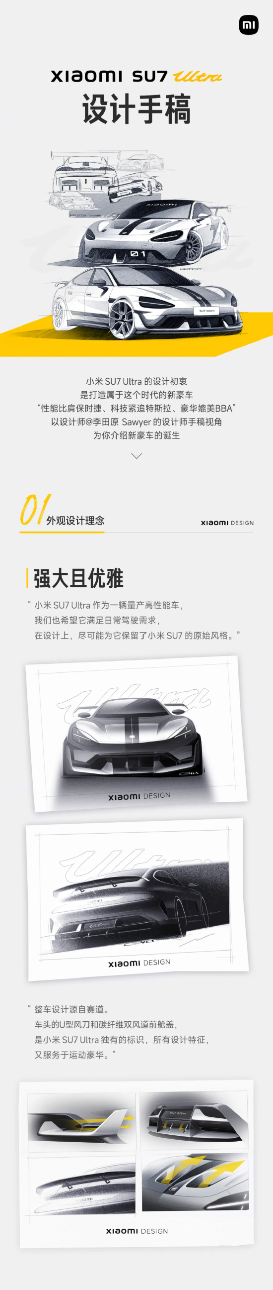 新浪科技讯 3月7日上午消息,小米今天公布了SU7 Ultra设计手稿。