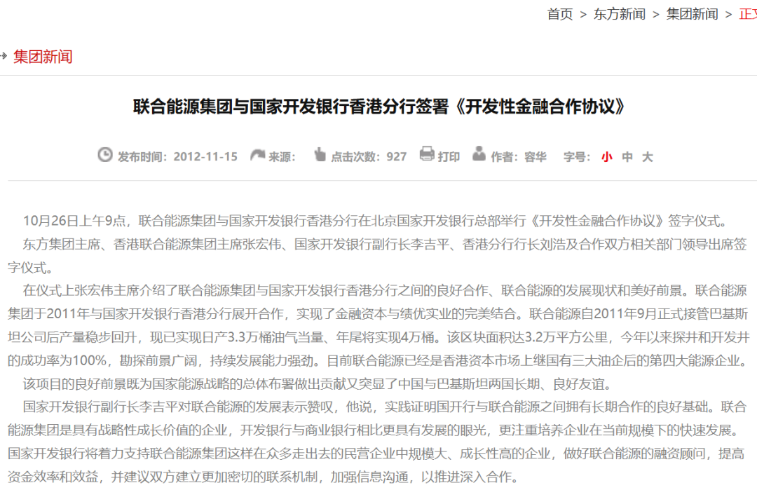 收购的当年,联合能源集团(00467.HK)和国家开发银行香港分行展开合作。