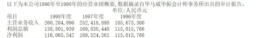 1998年,它家营收2.6个多亿,净利润能有1.16亿。