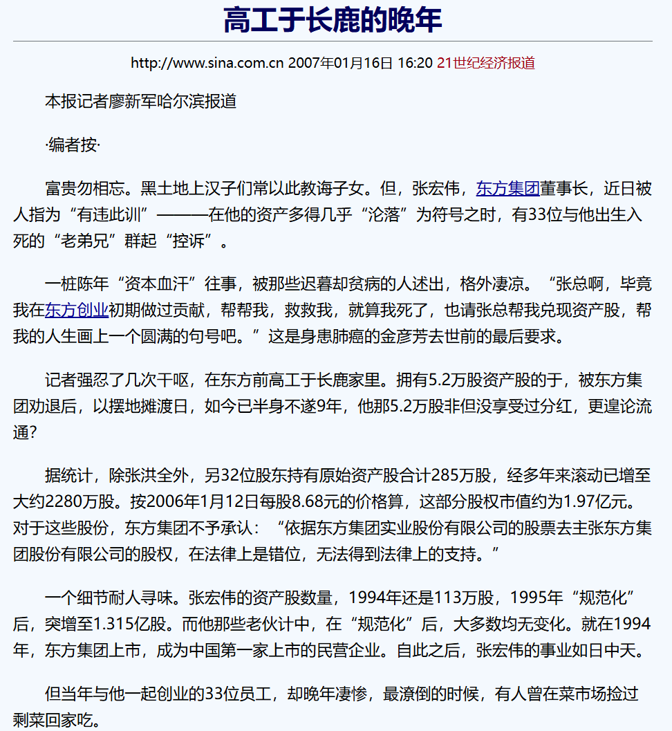 像于长鹿这样的高工,曾经是用来救急的,现在已经完全不重要了。东方集团动员他们退休了,没有退休金。