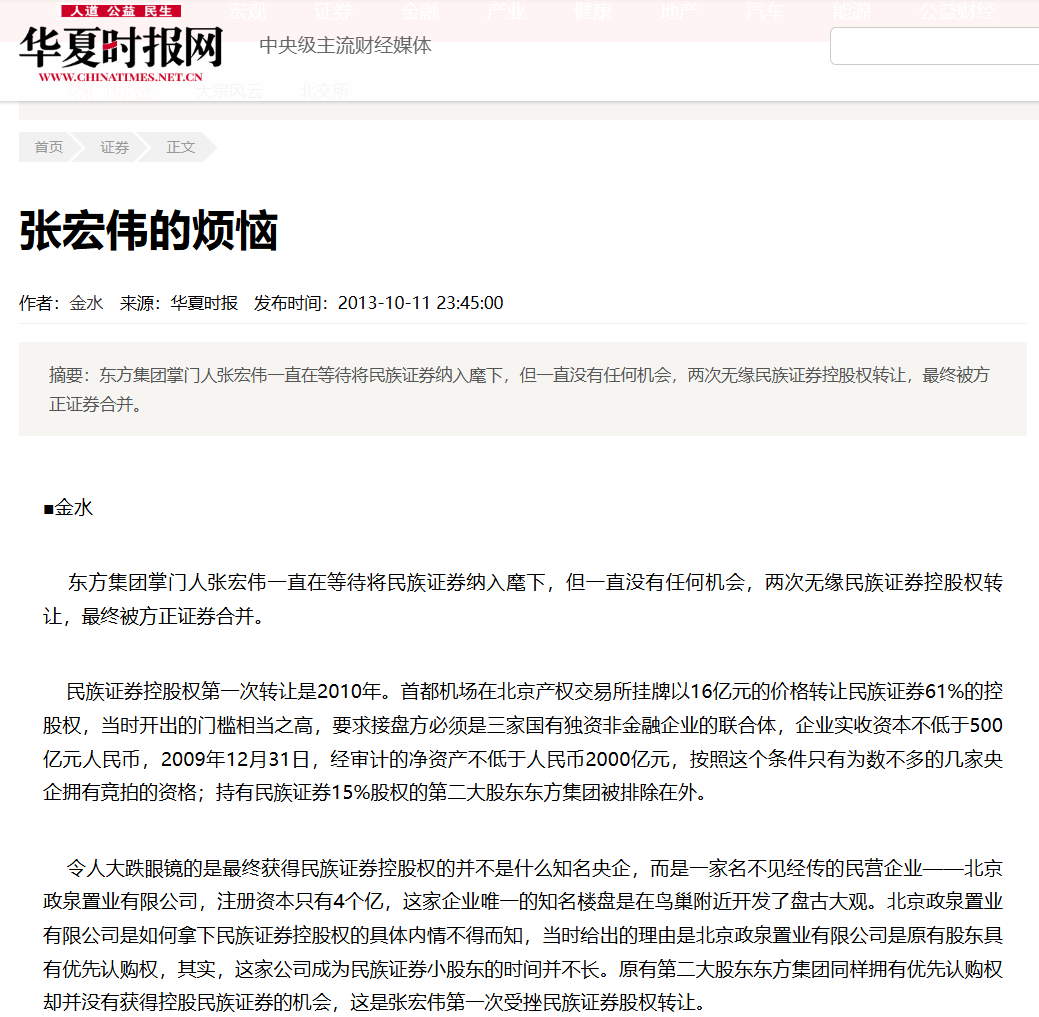 2011年,首都机场集团计划把自己手上的民族证券给转让了。