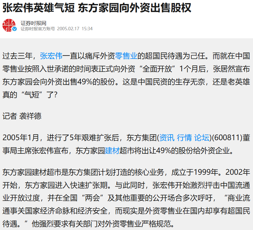 这时候的张老板反倒主动找外资谈判,想卖了东方家园。