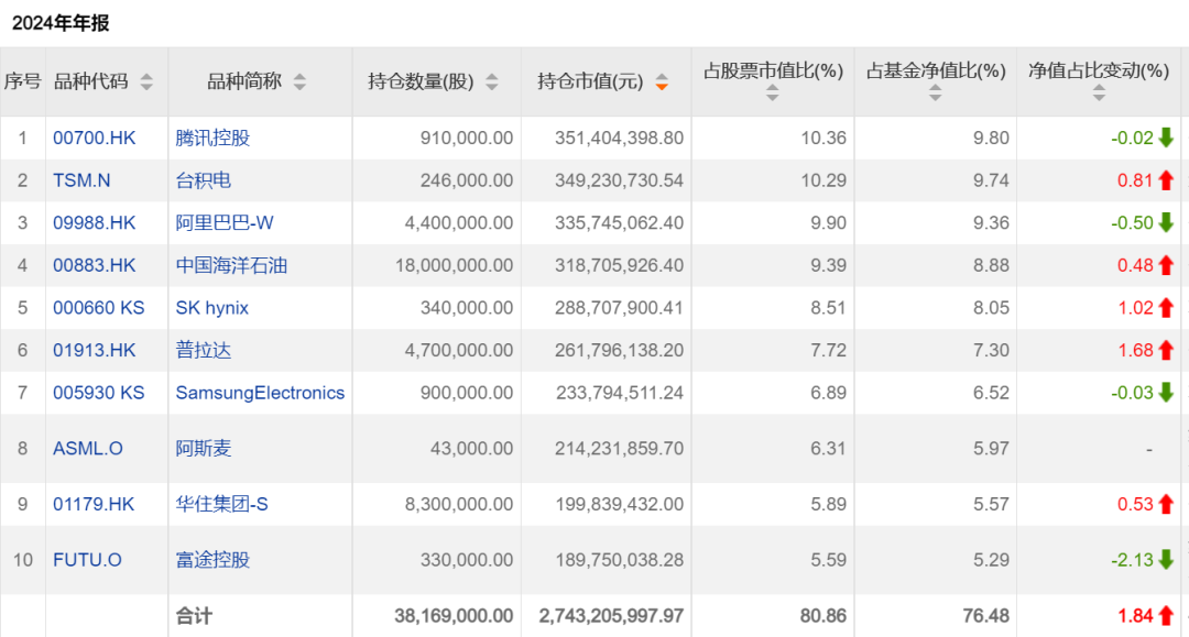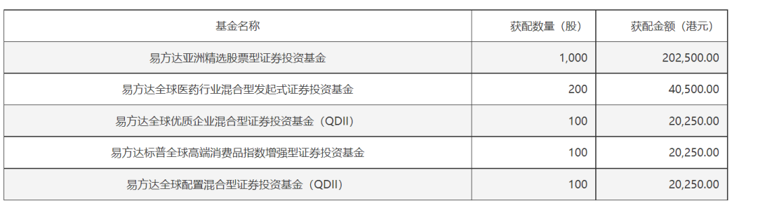 此外,杨桢霄管理的易方达全球医药行业混合,李剑锋管理的易方达全球优质企业混合,王元春管理的易方达标普全球高端消费品指数增强,张清华管理的易方达全球配置混合也均获配一定股份。