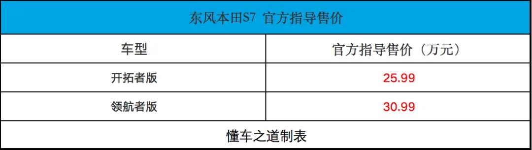 3月6日,东风本田S7正式发布上市,共推出2款车型,售价分别为25.99万元和30.99万元。