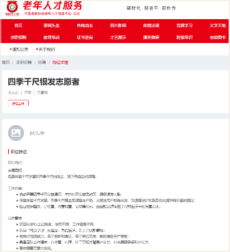 图说|量子之歌四季千尺招聘岗位信息受访行业人士向记者表示,“银发再就业”的背后是银发人群“积极老龄观”的显性表现,他们已从单一的“发挥余热”到形成独特“供给热源”发挥价值,形成从老有所为、老有所养到老有所学的良性循环。