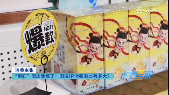 (2月26日,央视财经频道《经济信息联播》)2月28日,央视财经频道《消费主张》栏目再次报道了《 “哪咤”周边卖疯了!国漫IP消费潜力有多大?》。据商家介绍,春节后哪咤系列卡牌销售十分火爆,每天都有近百人进店购买,常常一到货就售罄。