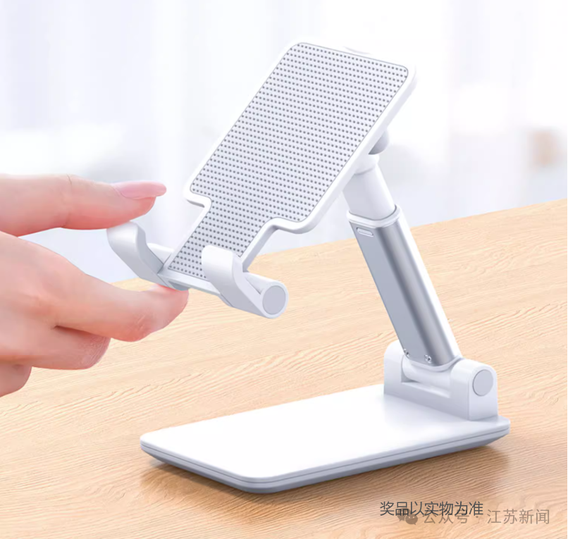 “江苏新闻”粉丝福利来啦!这次给大家准备的是定制款可折叠桌面手机支架,小巧便携,稳稳托住手机,让你看新闻时解放双手,避免肩颈疲劳,还能一边充电一边刷手机,两不耽误!