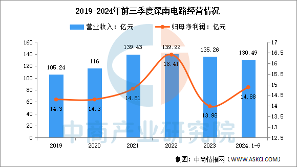 2024年前三季度实现营业收入130.49亿元,同比增长37.92%;实现归母净利润14.88亿元,同比增长63.88%。2023年主营产品包括印制电路板、封装基板、电子装联,营收分别占整体的59.68%、17.05%、15.67%。