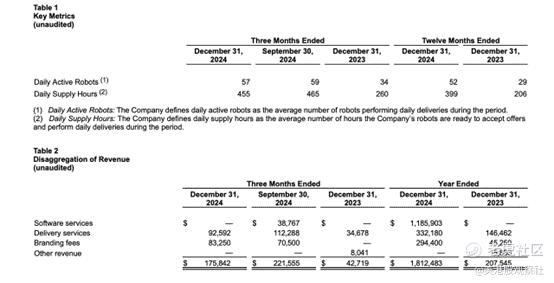 几周前,这家送餐机器人公司公布了一份令人失望的第四季度财报,营收未达市场共识目标。尽管在第四季度期间有所扩张,但Serve Robotics的销售额甚至没有环比增长,因为每天活跃的机器人数量减少了。