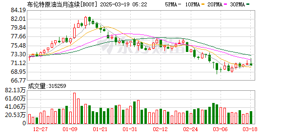 商品市场:国际金价收涨,现货黄金涨1.13%,报3034.42美元/盎司,时隔一个交易日再创历史新高。COMEX黄金期货涨1.15%,报3040.7美元/盎司,再创新高。国际油价18日下跌。截至当天收盘,纽约商品交易所4月交货的轻质原油期货价格下跌68美分,收于每桶66.90美元,跌幅为1.01%;5月交货的伦敦布伦特原油期货价格下跌51美分,收于每桶70.56美元,跌幅为0.72%。