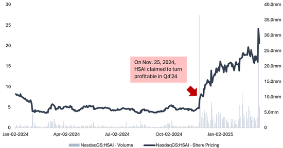 根据我们的尽职调查,这对于公司财务状况的描述极具误导性。虽然禾赛在2024年第四季度技术上实现了正的净利润,但我们认为这完全是由于其失去的客户allegedly 向禾赛支付了一笔大额的一次性解约费用,而并非由于业务的根本性改善所致。