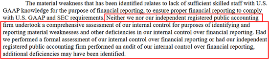在上市一年后,这一重大缺陷——源于缺乏具备美国GAAP专业知识的熟练员工——依然没有得到修复。