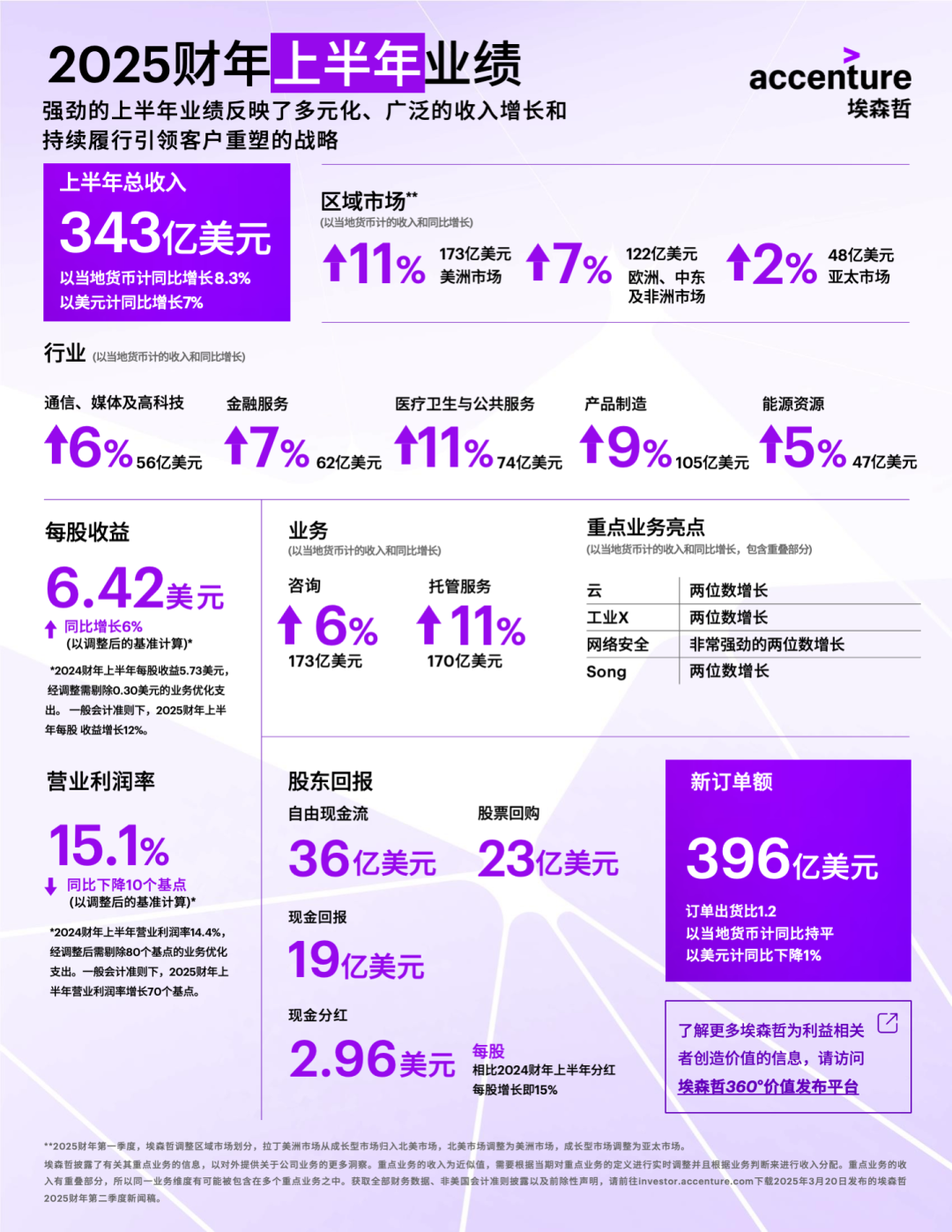 *自2025财年第一季度,埃森哲调整区域市场划分,拉丁美洲市场从成长型市场归入北美市场,北美市场调整为美洲市场,成长型市场调整为亚太市场。