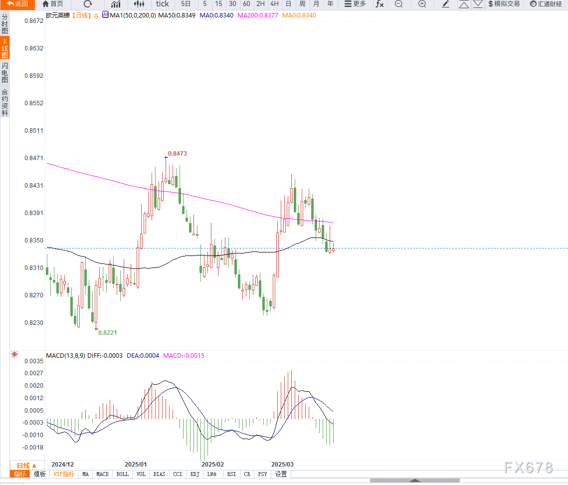 汇通财经APP讯——欧元承压的外部与内部因素共同推动EUR/GBP震荡下行。欧元兑英镑持续疲软,主要受到美国总统特朗普即将于4月2日实施的互助性关税政策不确定性影响。