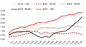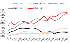 图14:不同回购比例(%)的公司在回购预案日后的超额收益 |