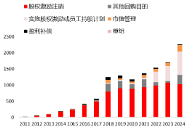 图4:按照回购目的划分,2011-2024年A股完成回购的公司数目 |