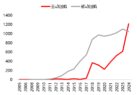 图5:按照主动与被动划分,2011-2024年完成回购的公司数目 |