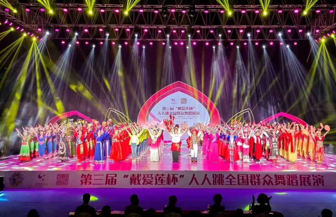 △“戴爱莲杯”人人跳全国群众舞蹈展演。李伟杰 摄从硬件设施来看,音乐方面,江门拥有江门演艺中心、台山广东音乐馆等专业场馆,为音乐演出、排练和展览提供了优质空间。近年来,江门还建设了多功能的音乐厅和录音棚,为音乐创作和录制提供了专业支持。舞蹈方面,江门打造的“戴爱莲舞蹈文化品牌”已形成矩阵:2万平方米的戴爱莲文化广场、舞蹈主题雕塑群、舞蹈特色小镇,构建起“展演—培训—创作”的全链条空间。