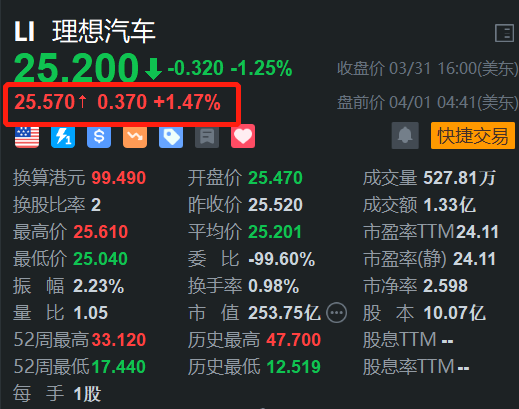 格隆汇4月1日|理想汽车(LI.US)美股盘前涨1.5%。消息上,理想汽车公布,2025年3月交付新车36,674辆,同比增长26.5%;第一季度共计交付92,864辆,同比增长15.5%。截至2025年3月31日,理想汽车历史累计交付量为1,226,736辆。此外,在20万元以上新能源汽车市场,理想汽车连续12个月获得中国汽车品牌销量冠军。(格隆汇)