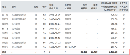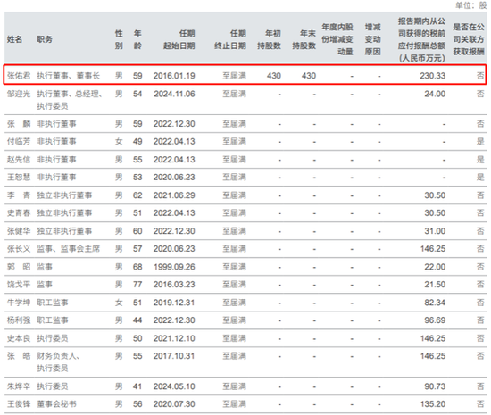 具体来看,2024年,除了董事长张佑军薪酬超200万元,其他高管应付薪资基本都在150万以下。而2023年同期,高管薪酬基本都在300万左右,其中薪酬超500万元的就7人。