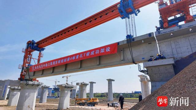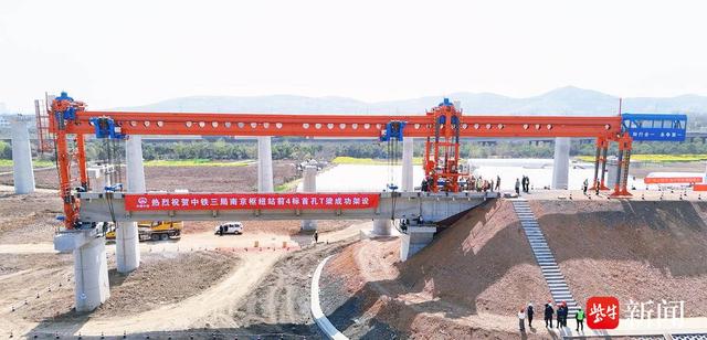 南京枢纽(江北地区)普速系统改造工程是北沿江高铁的控制性工程。中铁三局南京枢纽站前4标共27.6公里,包含桥涵、路基、轨道及改河、改路等工程,设置桥梁6座,T梁预制架设438孔,预计明年2月全部完成架设。
