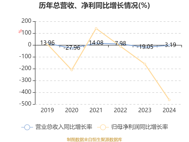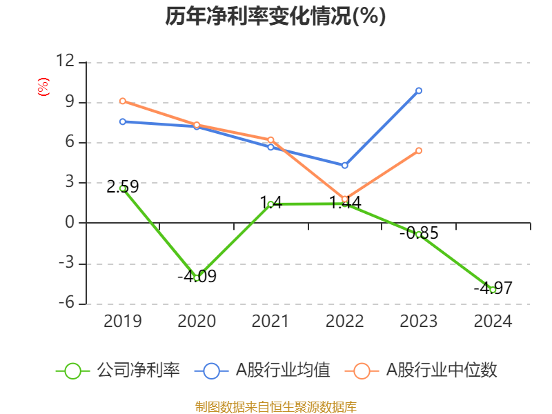 数据显示,2024年公司加权平均净资产收益率为-19.48%,较上年同期下降16.45个百分点。