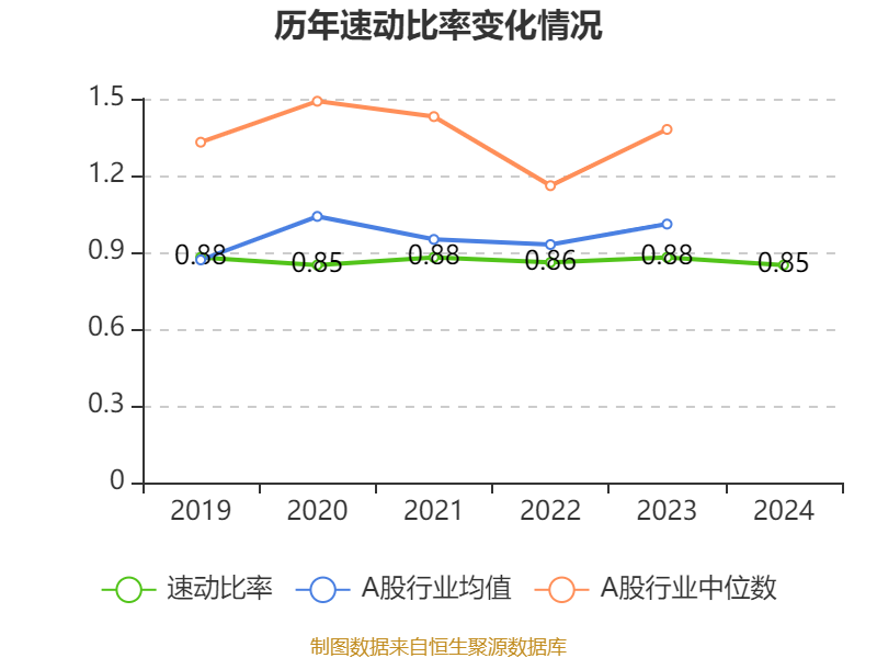 2024年,公司流动比率为1.06,速动比率为0.85。