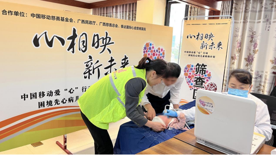 广西移动志愿者现场协助家长填写资料 郭宏涛摄记者了解到,此次中国移动爱“心”行动自4月8日启动,历时10天,覆盖河池、来宾、贺州三地。中国移动广西公司志愿者协同专家团队携带便携式超声设备深入都安、东兰、金城江区、宜州,来宾市忻城县、兴宾区、武宣县、金秀县等地展开免费筛查活动。