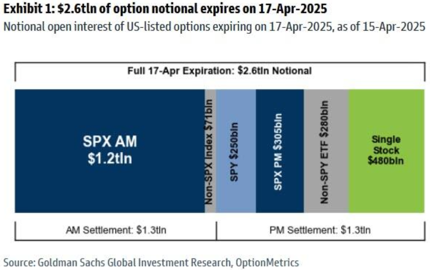 周四有超过2.6万亿美元的名义期权敞口将到期,其中包括1.2万亿美元的SPX期权和4800亿美元的个股期权。周四到期的期权名义价值相当于罗素3000指数市值的4.7%。但此次到期期权的相对规模低于2024年4月。