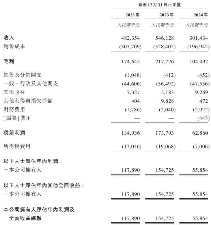 财务方面,于2022年、2023年及2024年,智汇矿业收入分别约为4.82亿元、5.46亿元、3.01亿元人民币;同期,公司拥有人应占年内利润及全面收益总额约为1.18亿元、1.55亿元、5585.4万元人民币。