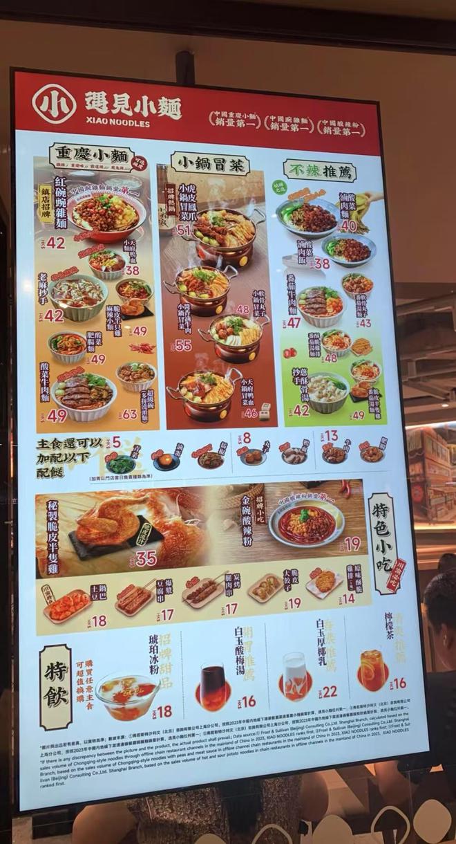 根据弗若斯特沙利文的资料,2022年至2024年连续三年,公司的重庆小面、豌杂面和酸辣粉线下销售量在所有中国连锁餐厅中排名第一。遇见小面在招股书中表示,下沉低线市场开店、探索海外市场开店、加大特许经营模式开店,是公司未来发展的“三驾马车”。