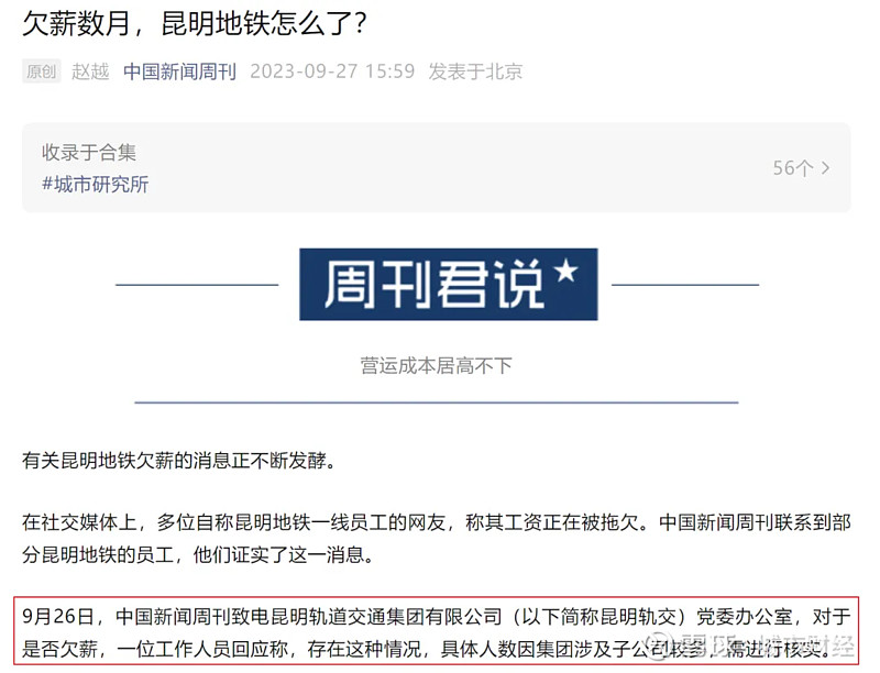昆明的债务问题,还引发了薪酬问题。