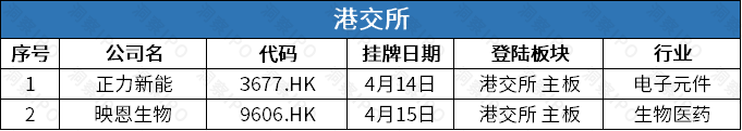 4月14日-4月20日,港交所有2家公司上市。