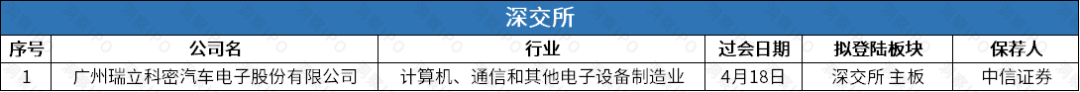 4月14日-4月20日,上交所无公司过会;深交所主板有1家公司过会。