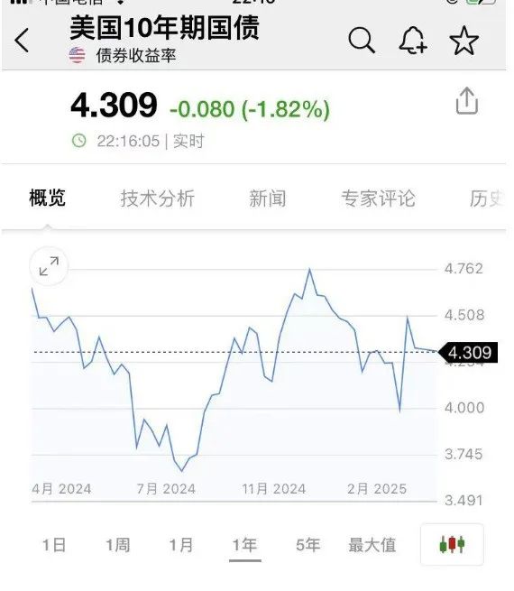 美债普遍走高,目前10年期美债收益率4.309%,下跌8个基点(债券收益率和债券价格走势相反)。