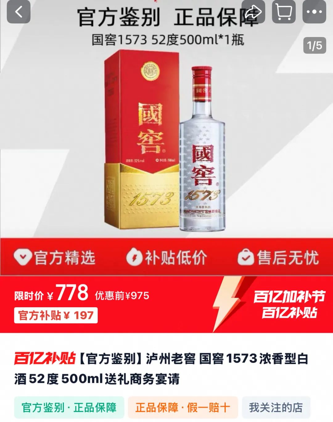 穿透君随手一搜淘宝,百亿补贴上,1573的500ml53度,价格已经来到778元。