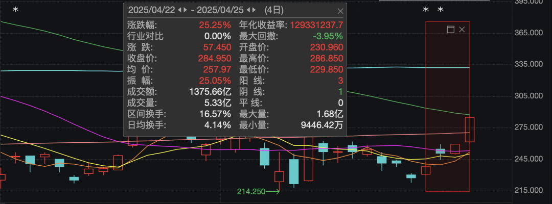 近4个交易日,特斯拉连续上涨,累计涨幅超过25%。当地时间4月22日,特斯拉公司首席执行官埃隆·马斯克称,他将减少在政府效率部工作的时间并把更多时间投入到特斯拉。对于马斯克专注于经营公司,美国总统特朗普当地时间23日作出表态,他对马斯克进行了称赞,“他真的帮助了国家,帮我们省了很多钱”。特朗普还称,马斯克宣布准备退出在政府的工作并专注于经营公司是“我们预计大约(在)这个时候会发生” 的事情,“但我会和埃隆谈谈”。对于马斯克专注于经营公司,特朗普称,“我们不得不在某个时候放手让他去做这些事情”。