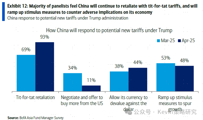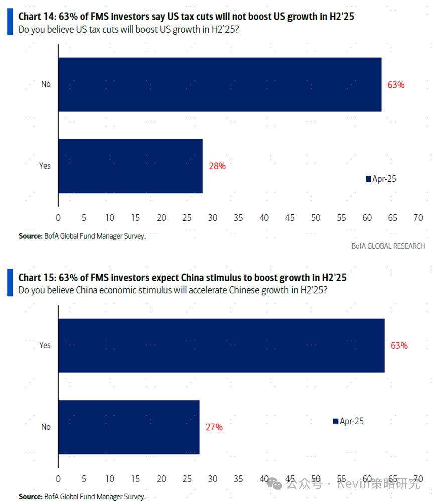 3. 93%的投资者认为关税的反制会继续,但认为刺激增加以应对增长压力的投资者比例降至48%。