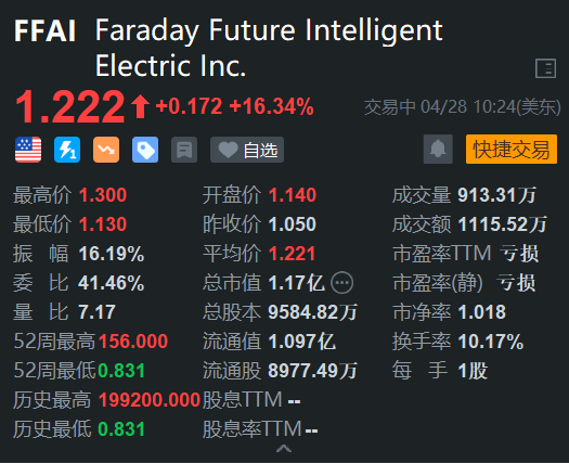 格隆汇4月28日|法拉第未来(FFAI.US)大幅上涨超16%报1.22美元。消息上,继于2019年卸任法拉第未来(Faraday Future)CEO后,FF创始人、乐视创始人贾跃亭最新再被任命为联席CEO。他透露,FF将启动并购计划,并购全球范围内高价值、高性价比的AI技术公司以及车生态相关的技术和AI公司,构建全球顶尖的AI车生态,促进公司资本价值尽快能够回归到真实价值。(格隆汇)