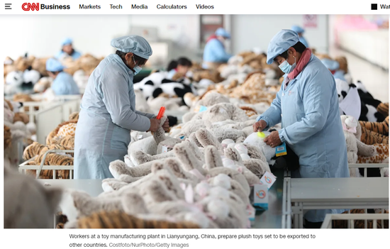 《纽约时报》写道,数十年来,中国投入大量资金发展制造业。时至今日,中国制造了世界上近三分之一的实物产品,这一产量规模比美国、德国、日本、韩国和英国的总和还要多。