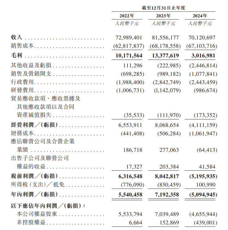 财务方面,于2022年度、2023年度、2024年度,晶澳科技收入分别约为729.89亿元、815.56亿元、701.21亿元人民币;同期,年内利润分别约为55.40亿元、71.92亿元、-50.95亿元人民币。