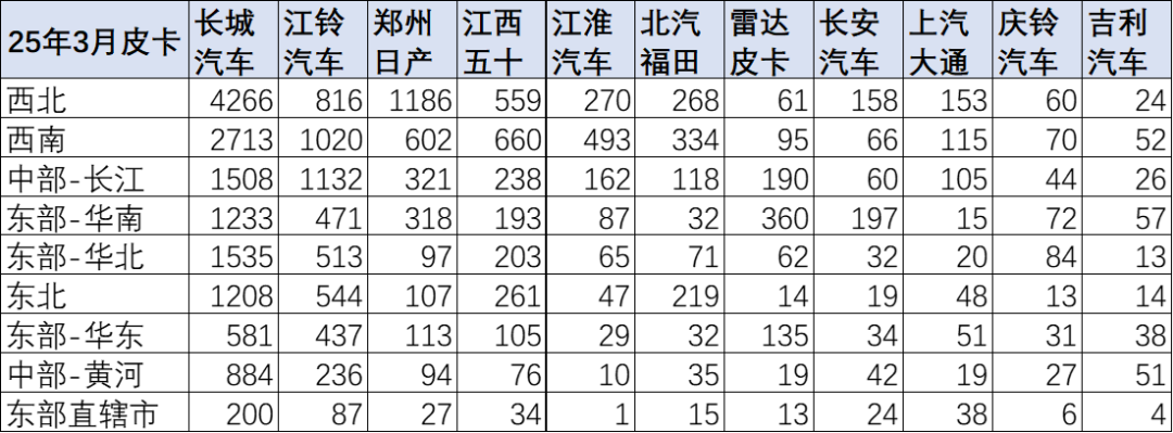 1、皮卡市场区域变化