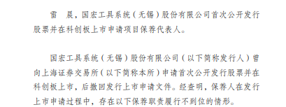 2023年6月30日,上交所受理国宏工具申报。2024年1月28日首次问询。然而,发行人和保荐机构并没有更新申报文件。2024年4月28日,因发行人和保荐人申请撤单,上交所终止审核。