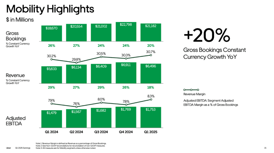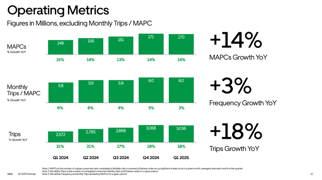此外,首席执行官达拉·科斯罗萨西强调,公司不满足于“良好”,而是追求“卓越”,并指出本季度业绩表现强劲,包括新品发布、合作伙伴关系拓展以及创纪录的利润率。团队并未对收入未达预期的情况辩解,而是强调了持续的出行增长、高用户参与度以及强劲的国际扩张。首席财务官普拉尚特·马亨德拉-拉贾(Prashant Mahendra-Rajah)明确阐述了公司的优先事项:在不牺牲自动驾驶汽车、外送和全球市场增长投资的情况下,推动利润率的可持续增长。