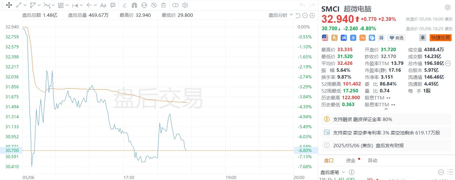 格隆汇5月7日|超微电脑(SMCI.US)美股盘后跌6.8%。超微电脑第三财季净销售46.0亿美元,分析师预期47.6亿美元。预计全年净销售218亿-226亿美元,公司原本预计235亿-250亿美元。预计第四财季净销售56亿-64亿美元,分析师预期65.9亿美元。