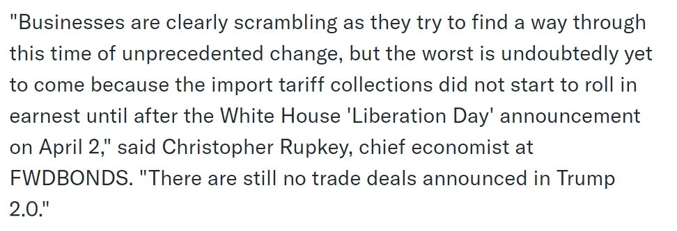 路透社报道截图大量事实证明,本届美国政府上台以来,其推出和威胁推出的每一项关税政策都在令美国经济掉头向下。