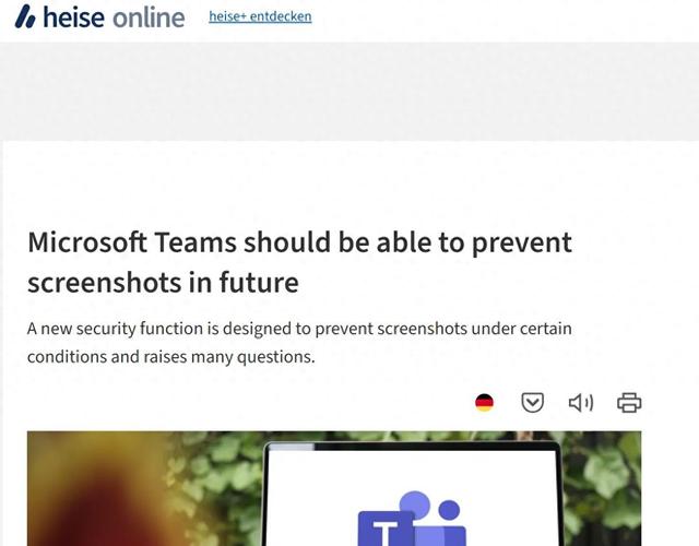 【环球网科技综合报道】5月12日消息,据外媒heiseonline报道称,微软公司计划于7月推出一项名为“防截屏”的新功能,旨在更好地保护Teams会议内容的安全与隐私。