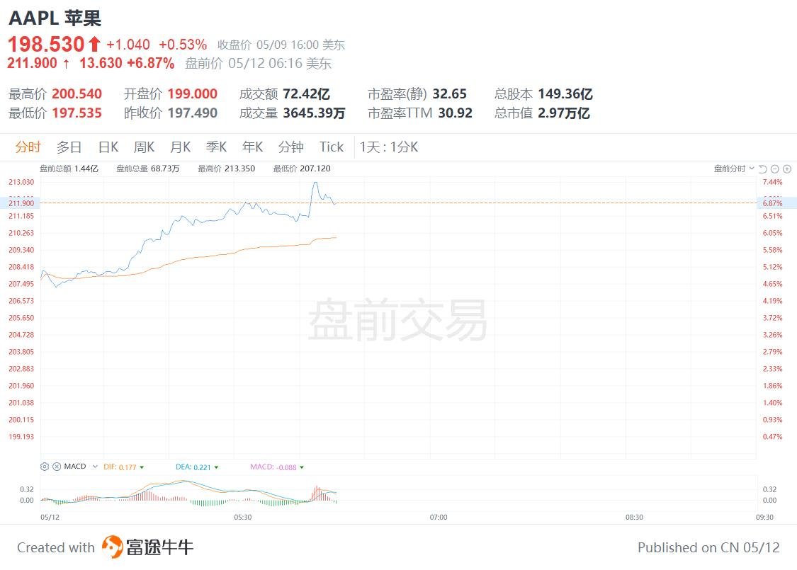 苹果(AAPL.US)盘前进一步拉升涨超7%